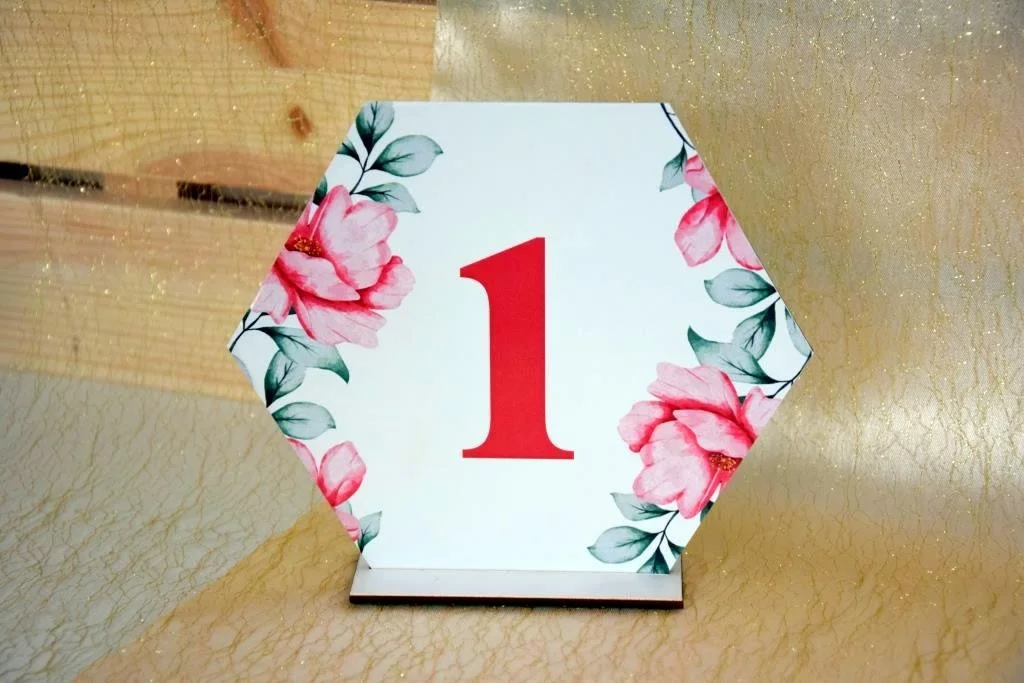 Číslovanie stolov v romantickom kvetinovom dizajne vhodné na svadbu alebo akúkoľvek oslavu. Cena je uveden celý popis