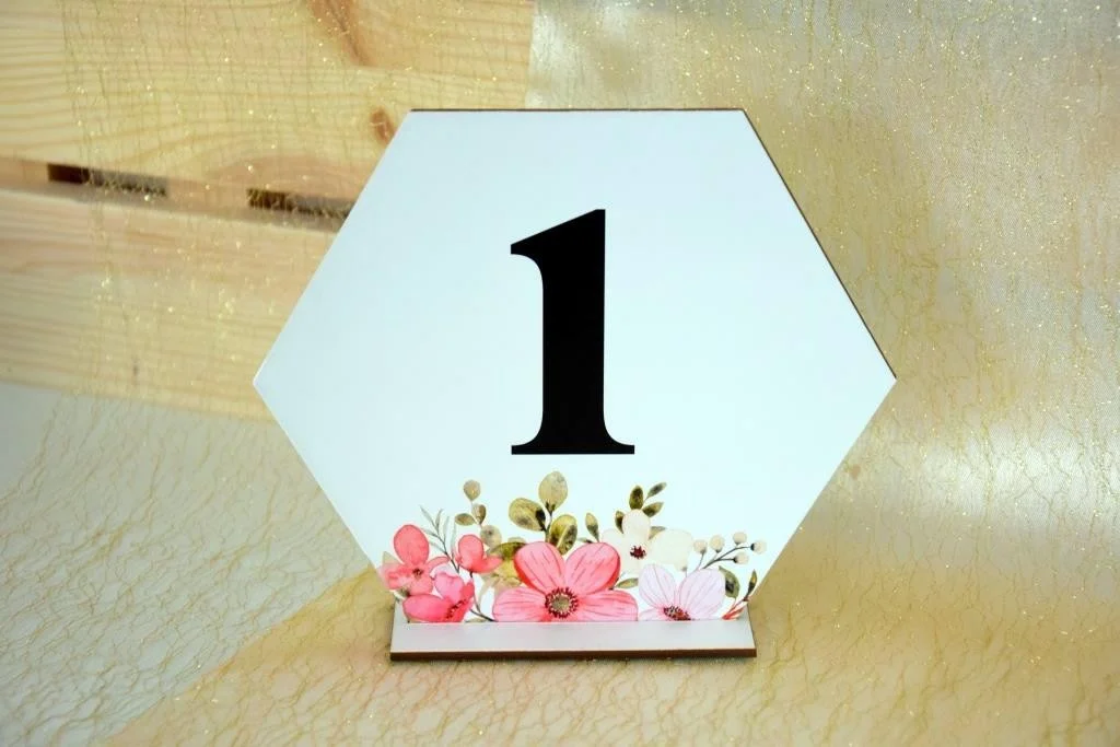 Číslovanie stolov v romantickom kvetinovom dizajne vhodné na svadbu alebo akúkoľvek oslavu. Cena je uveden celý popis