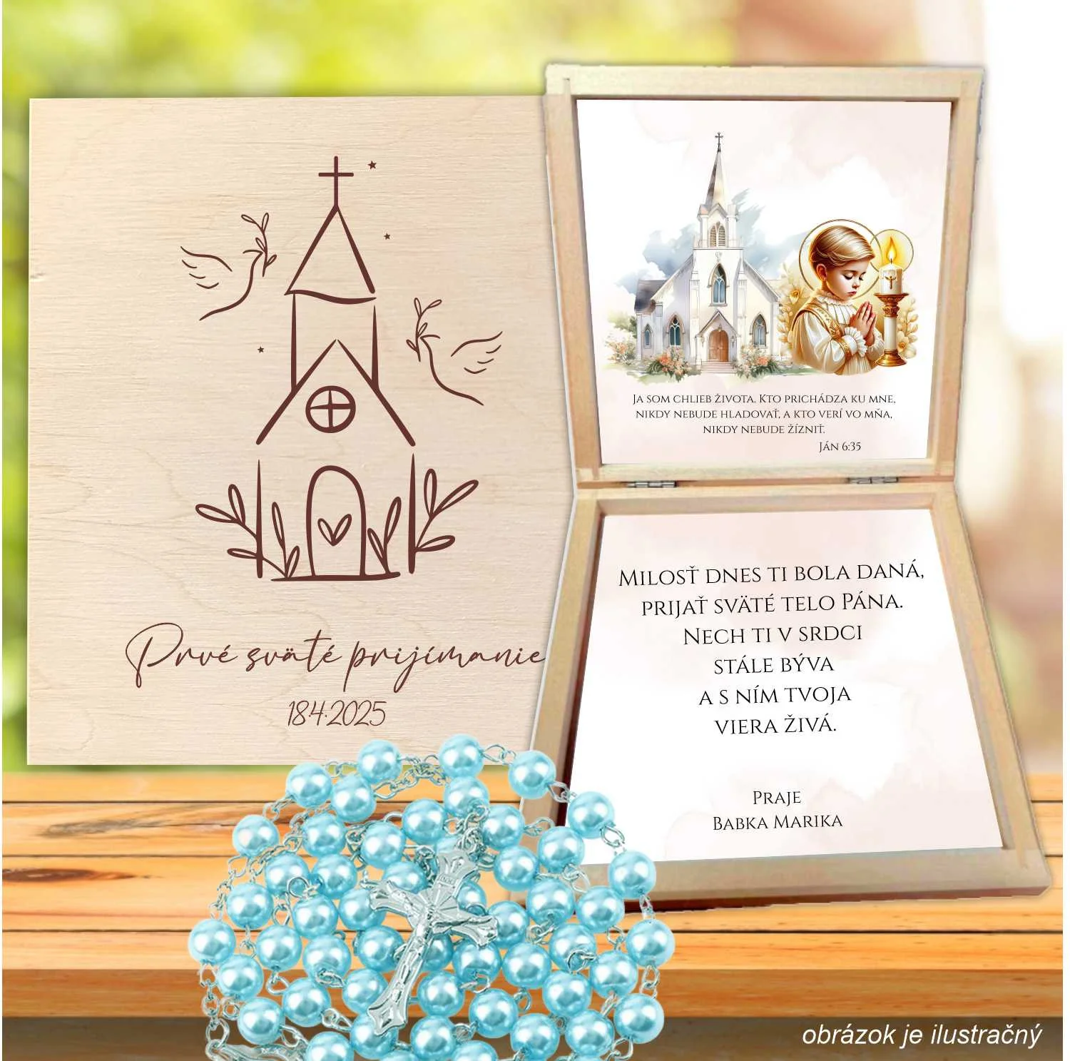 Táto krabička s ružencom na prvé sväté prijímanie je viac než len darček – je to trvalá spomienka na významný deň, ktorý si bude dieťa uchovávať po celý život.