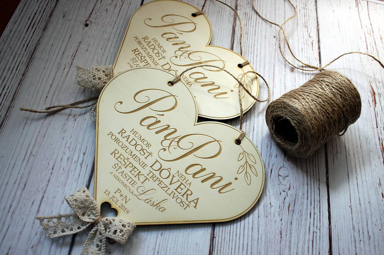 Drevené srdce „Pán & Pani“ – svadobná dekorácia Elegantná drevená dekorácia v tvare srdca s nápisom Pán & Pani je krásnym doplnkom na svadbu alebo milým darčekom pre novomanželov. Prírodné spracovanie, jemná grafika a možnosť zavesenia vytvárajú nadčasovú spomienku na výnimočný deň. celý popis