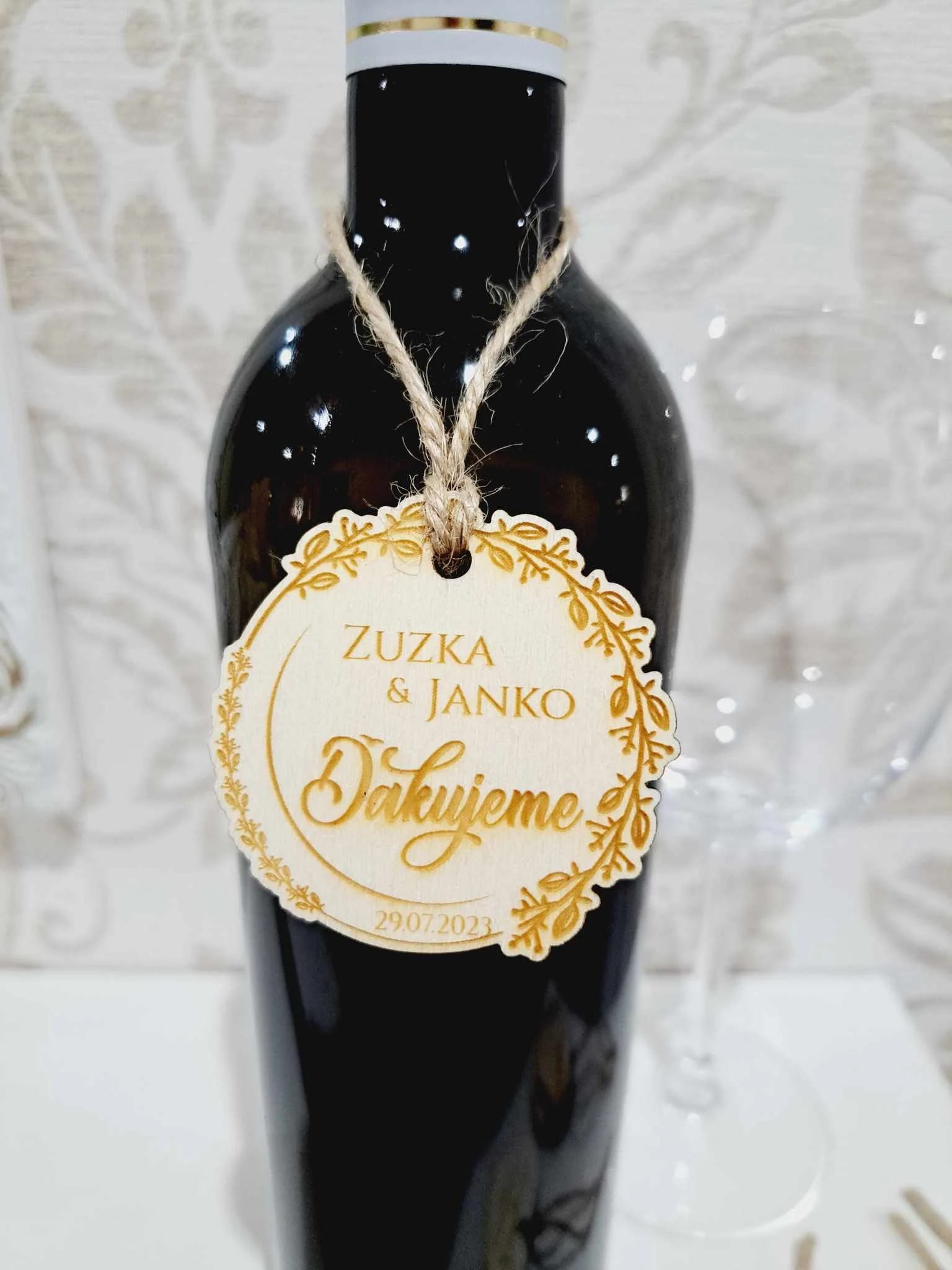 Etiketa na fľašu - drevená