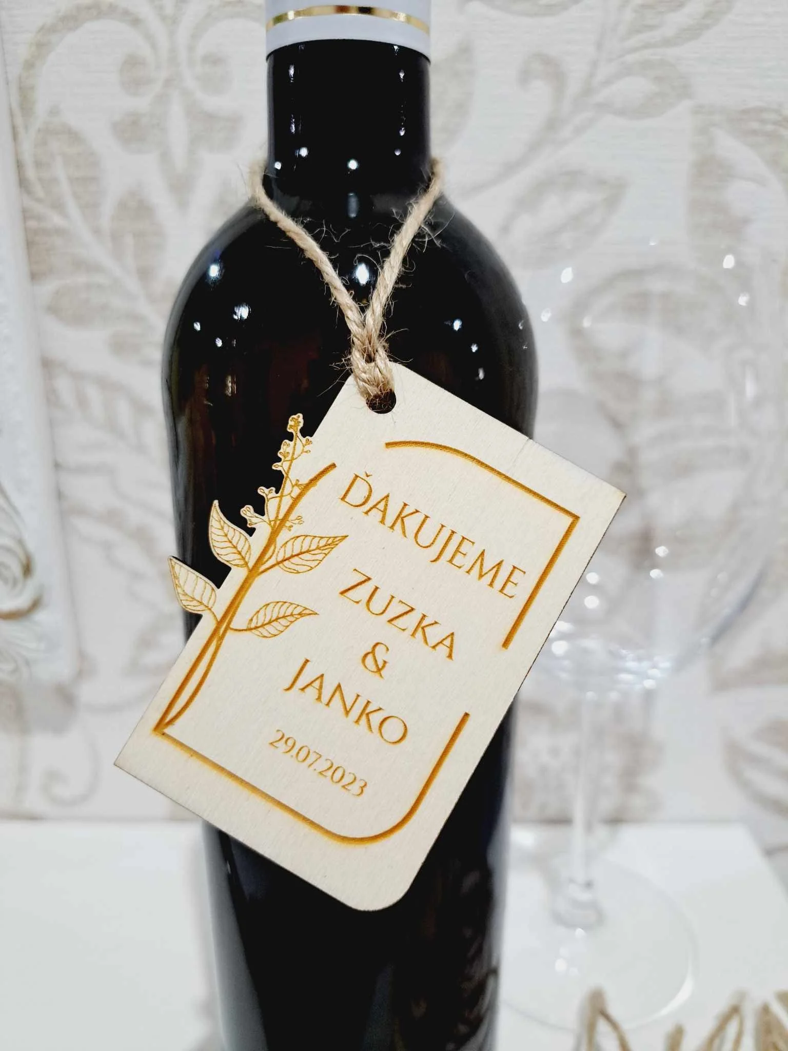 Etiketa na fľašu - drevená