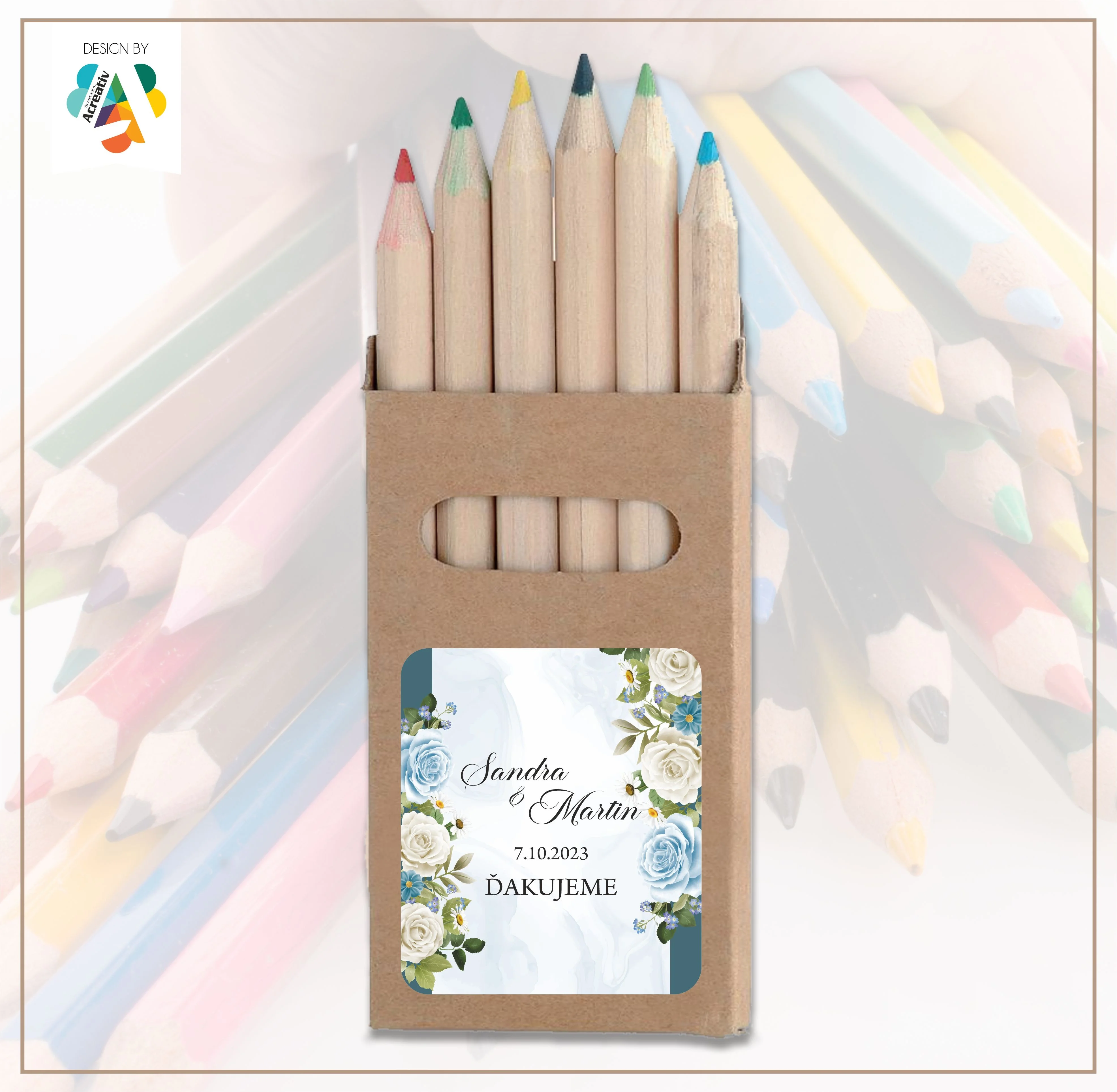 Každý set farbičiek je doplnený o originálny obal s menami mladomanželov, dátumom svadby alebo vlastným textom. Vďaka tomu sa z obyčajných farbičiek stáva jedinečný svadobný darček, ktorý poteší deti aj rodičov. Dizajn je možné prispôsobiť štýlu vašej svadby – od jemného romantického až po moderný či boho vzhľad.