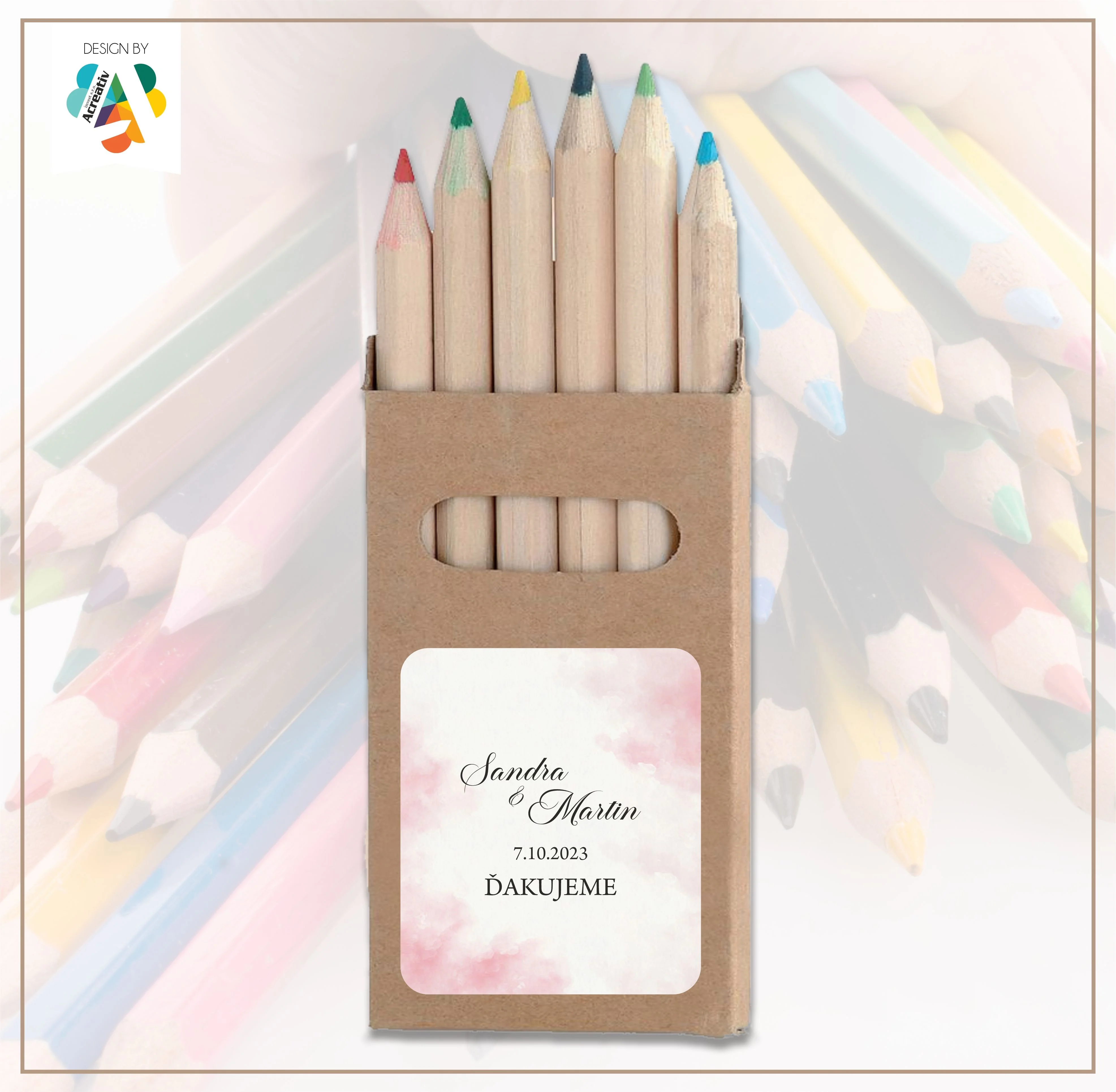 Každý set farbičiek je doplnený o originálny obal s menami mladomanželov, dátumom svadby alebo vlastným textom. Vďaka tomu sa z obyčajných farbičiek stáva jedinečný svadobný darček, ktorý poteší deti aj rodičov. Dizajn je možné prispôsobiť štýlu vašej svadby – od jemného romantického až po moderný či boho vzhľad.