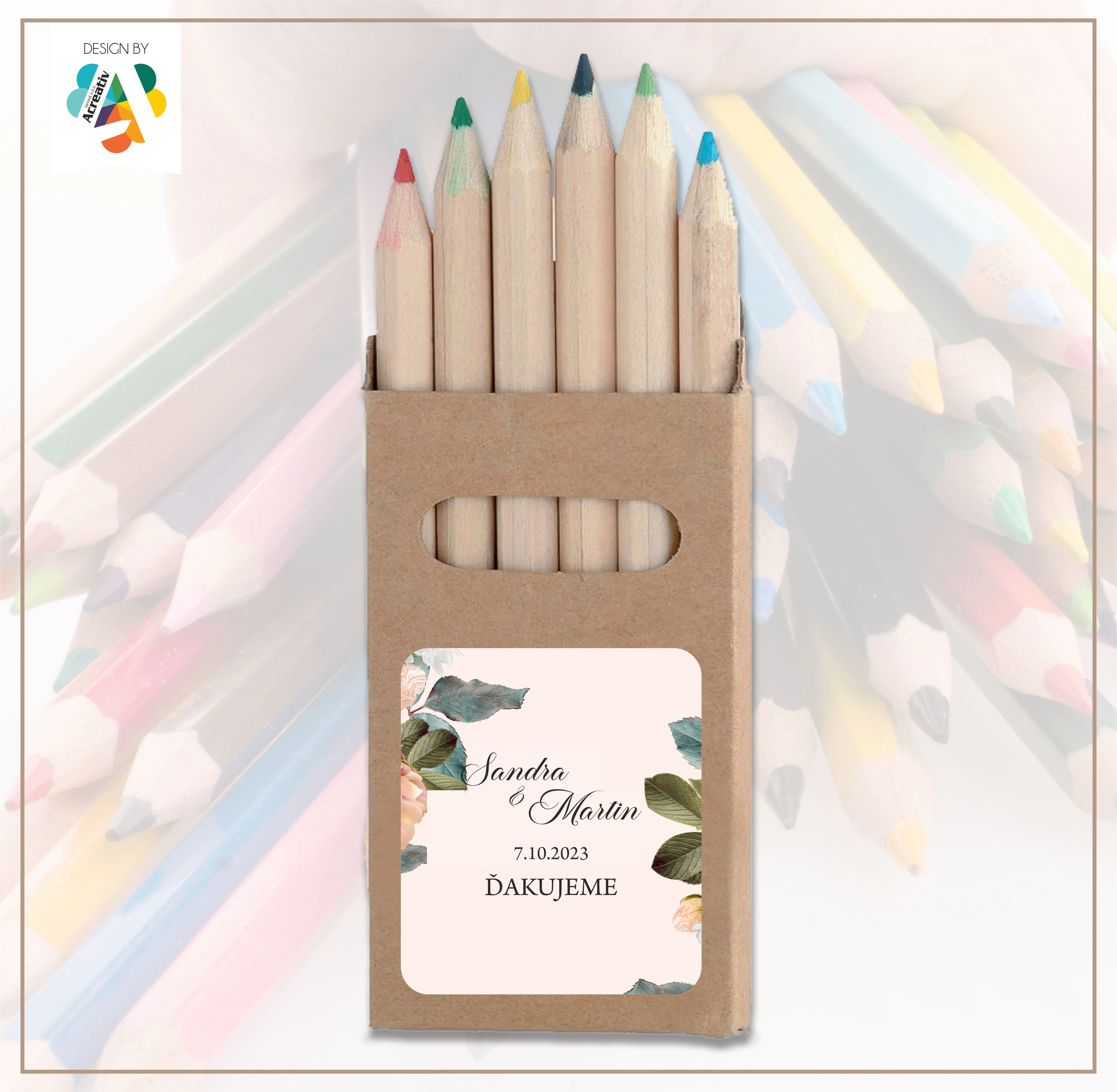 Každý set farbičiek je doplnený o originálny obal s menami mladomanželov, dátumom svadby alebo vlastným textom. Vďaka tomu sa z obyčajných farbičiek stáva jedinečný svadobný darček, ktorý poteší deti aj rodičov. Dizajn je možné prispôsobiť štýlu vašej svadby – od jemného romantického až po moderný či boho vzhľad.