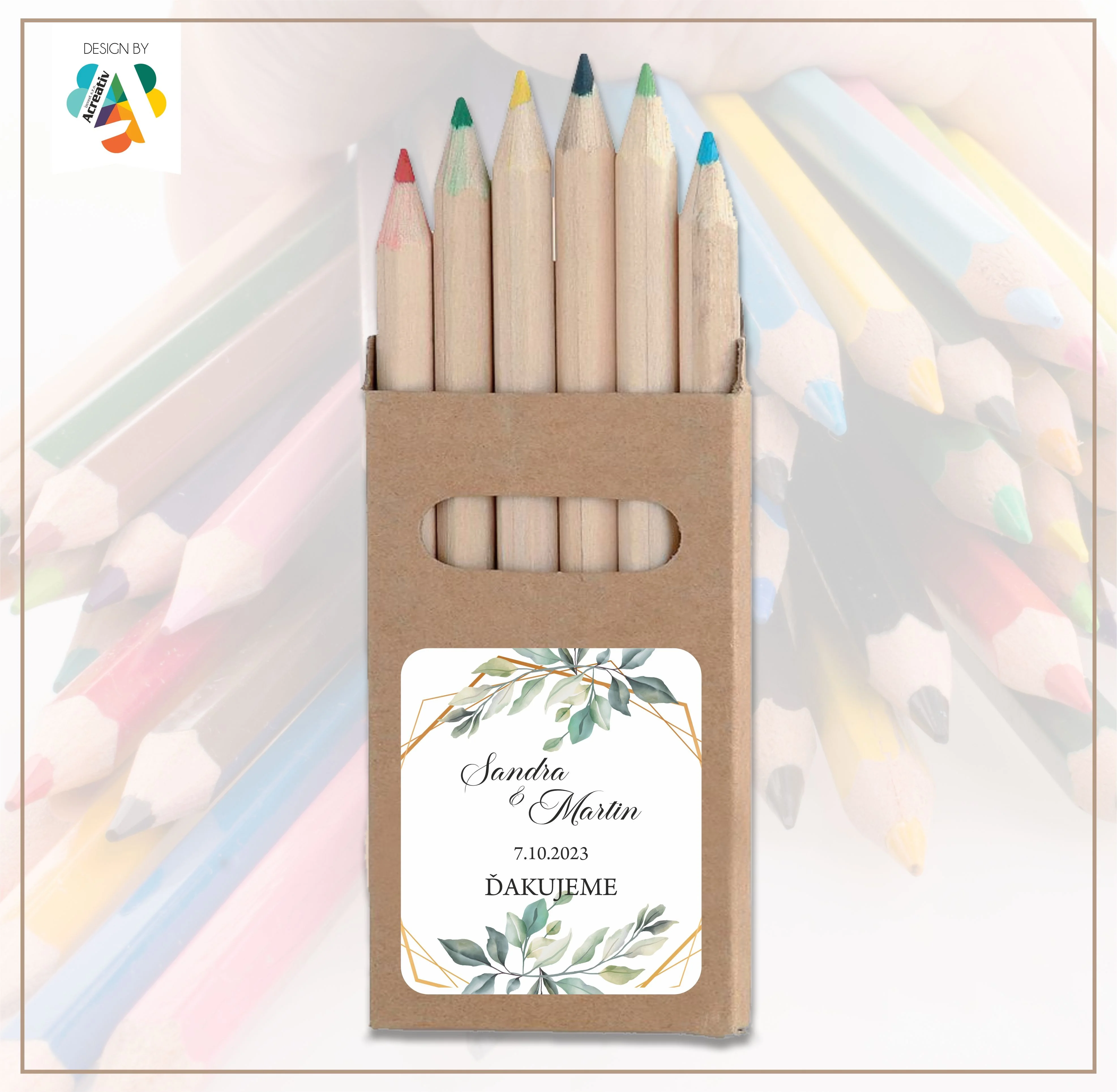 Každý set farbičiek je doplnený o originálny obal s menami mladomanželov, dátumom svadby alebo vlastným textom. Vďaka tomu sa z obyčajných farbičiek stáva jedinečný svadobný darček, ktorý poteší deti aj rodičov. Dizajn je možné prispôsobiť štýlu vašej svadby – od jemného romantického až po moderný či boho vzhľad.
