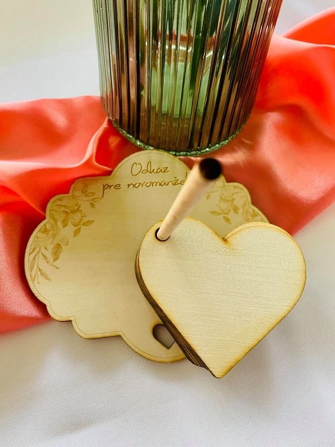 Originálne spestrenie vášho svadobného dňa v podobe tejto drevenej svadobnej knihy pre hostí. Na srdiečkach Vám svadobčania jednoducho zanechajú odkaz, ktorý sa bežne píše do tradičnej papierovej svadobnej knihy hostí.