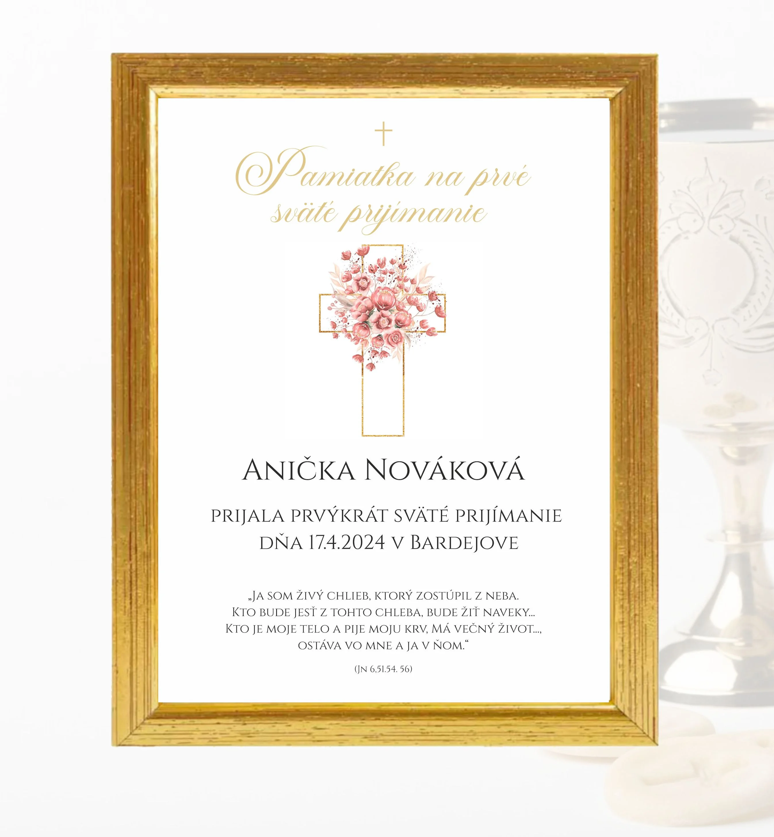 veľkosť: A4materiál: drevený rám zlatou farbou + grafický papier celý popis