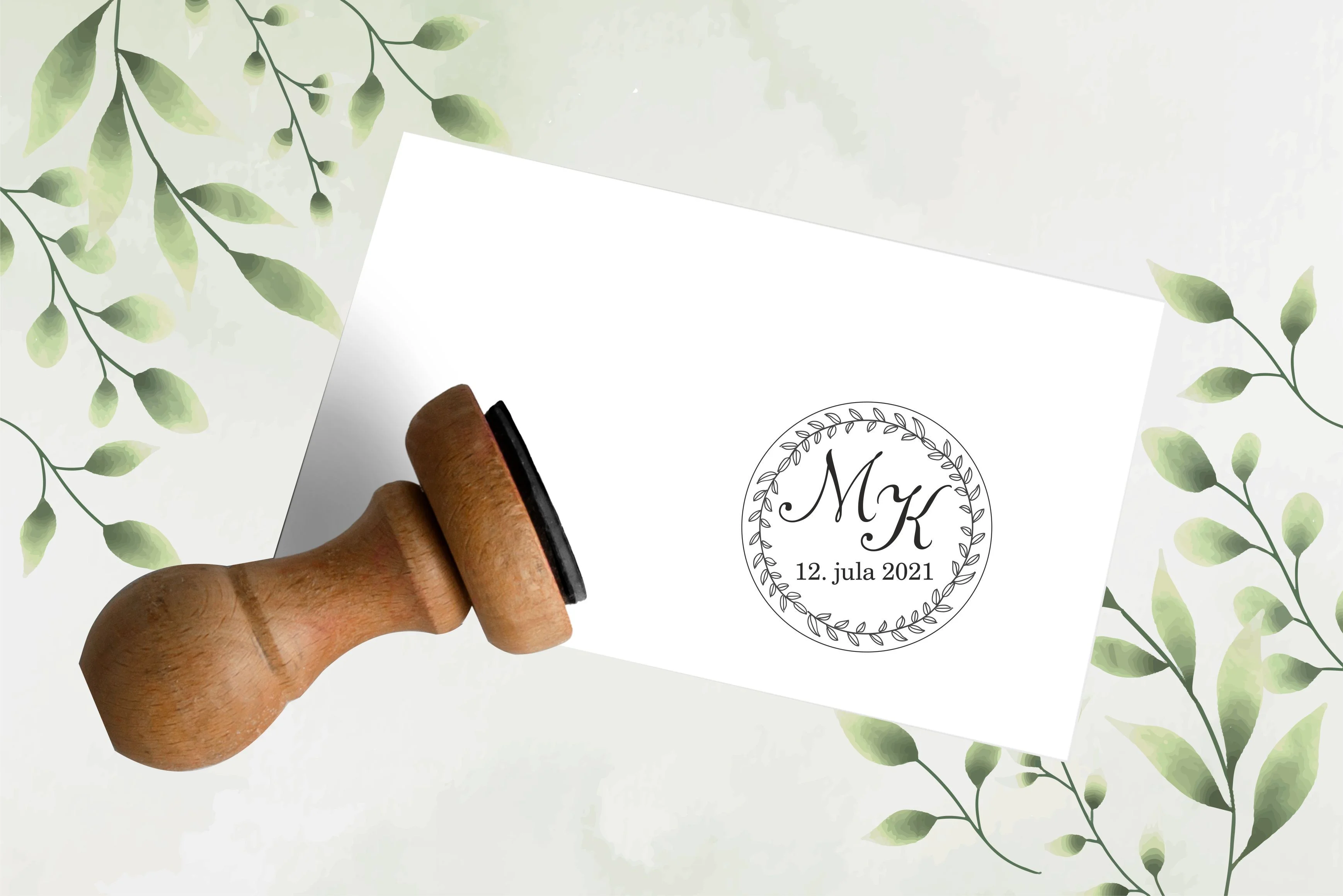Svadobná pečiatka je vyrobená pomocou lasera. Spodná časť je vyrobená z gumy. Na túto časť sa otlačí atrament. Spodná časť pečiatky je vyrobená v rozmere 4cm. celý popis
