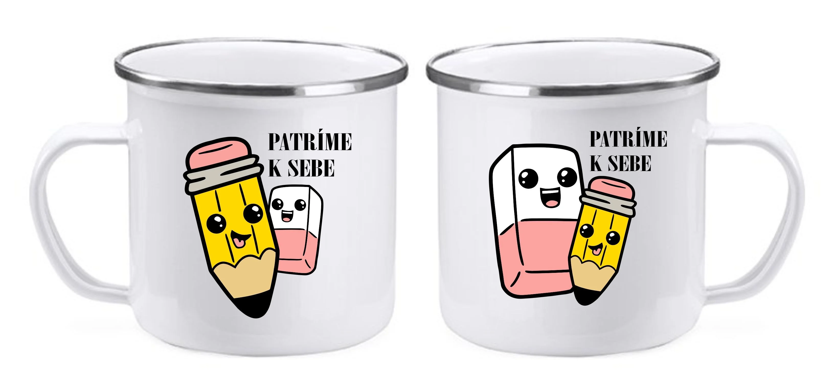 - Plechové hrnčeky pre páry PATRÍME K SEBE