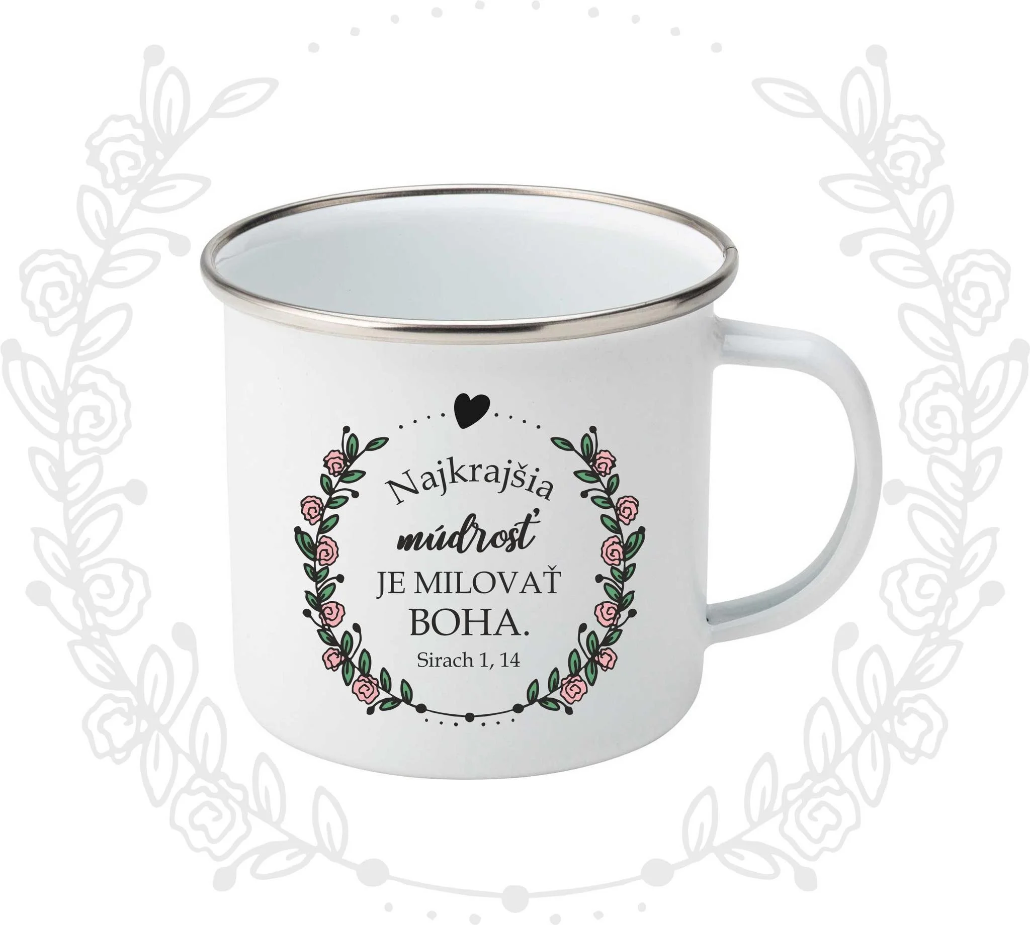 Plechový hrnček - Najkrajšia múdrosť je milovať Boha