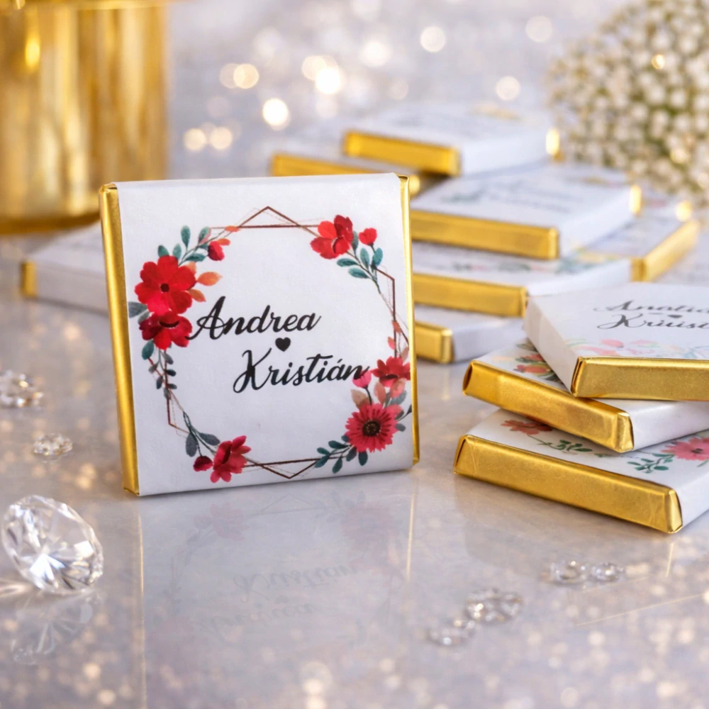 Svadobná mini čokoládka s etiketou na mieru. celý popis