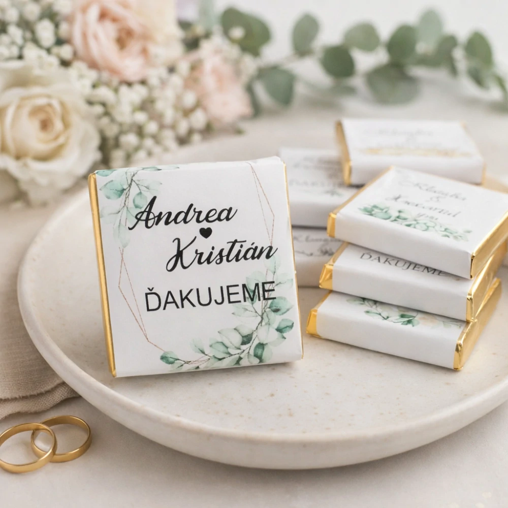 Svadobná mini čokoládka s etiketou na mieru. celý popis