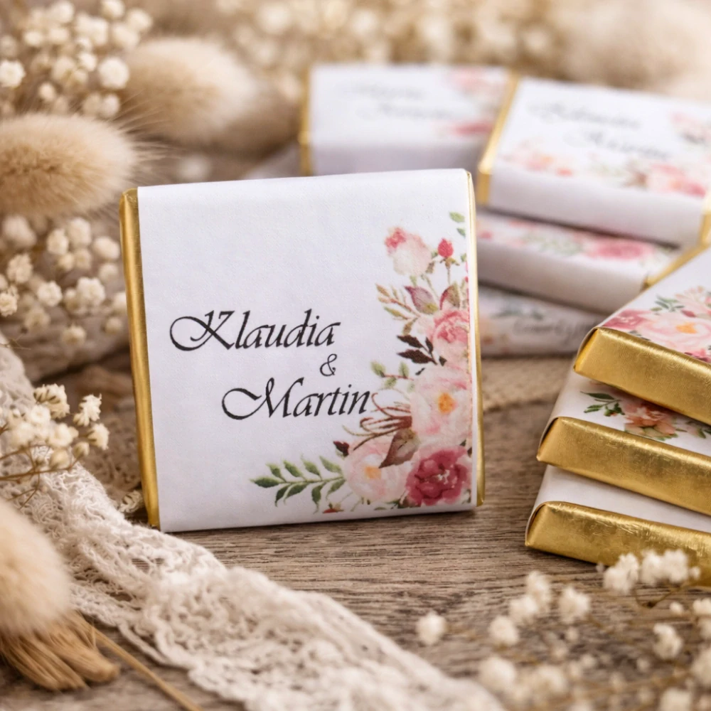 Svadobná mini čokoládka s etiketou na mieru. celý popis