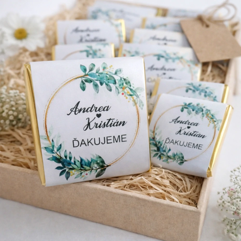 Svadobná mini čokoládka s etiketou na mieru. celý popis