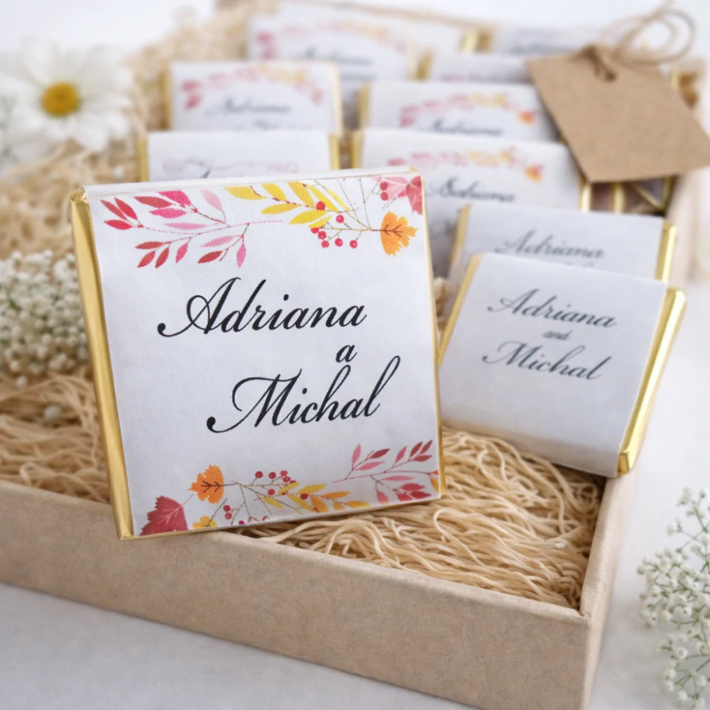 Svadobná mini čokoládka s etiketou na mieru. celý popis