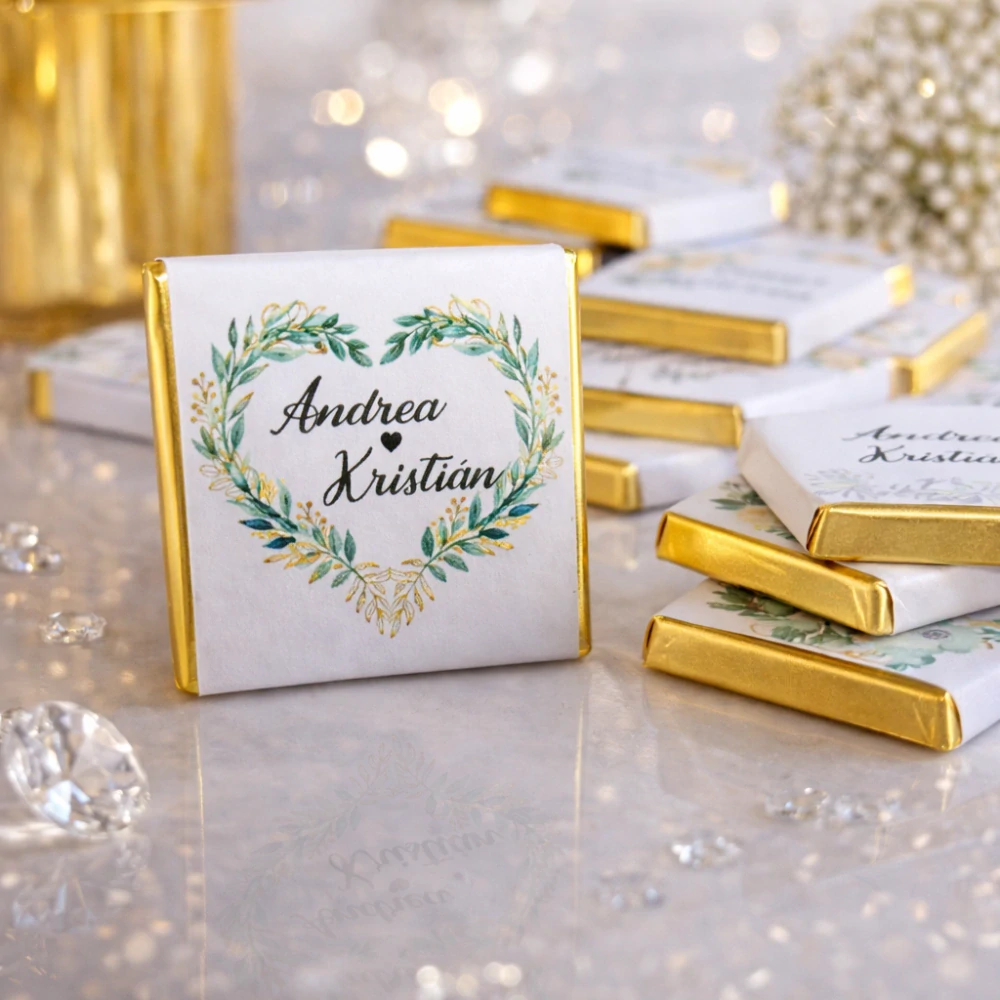 Svadobná mini čokoládka s etiketou na mieru.  Potešte svojich svadobných hostí originálnym darčekom v rôznych motívoch a farebných prevedeniach, ktoré sa budú skvele hodiť k Vašej svadobnej výzdobe.  celý popis