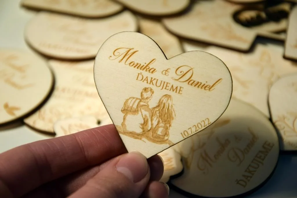 Všetky magnetky vyrábame pre Vás na mieru, preto pri objednávke nezabudnite napísať menáa dátum Vašej svadby.