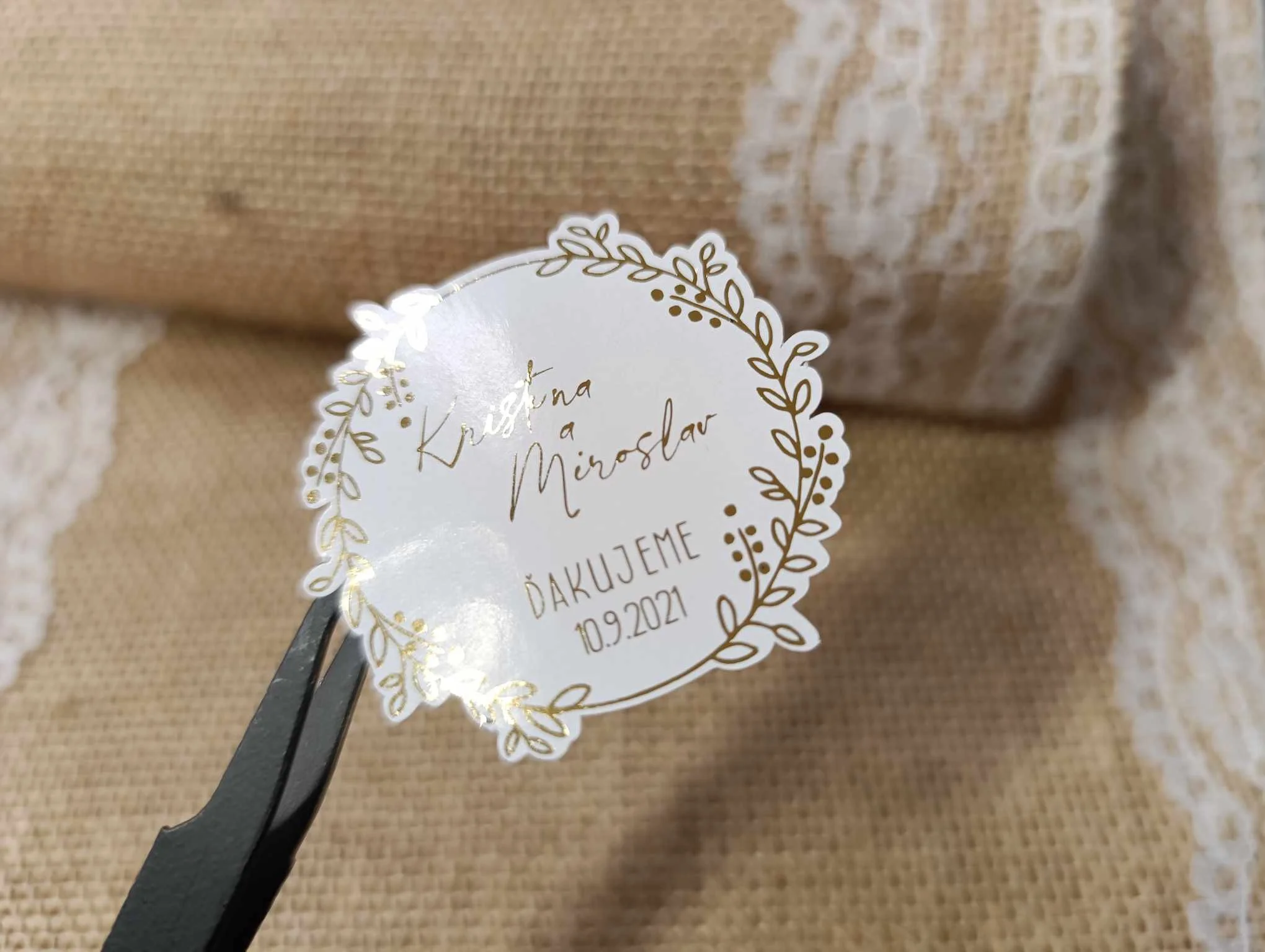 Svadobné nálepky vyrábame v rozmeroch 45 mm a 55 mm.