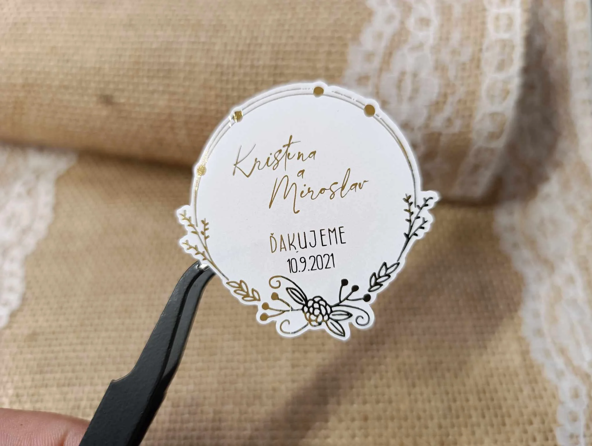 Svadobné nálepky, sú nádherný spôsob, ako urobiť vašu svadbu ešte špeciálnejšiu a viac osobnejšiu, no zároveň sú aj skvelým doplnkom na darčeky, kde aj veľmi jednoduché svadobné výslužky dokážu spraviť zaujímavými a jedinečnými.
