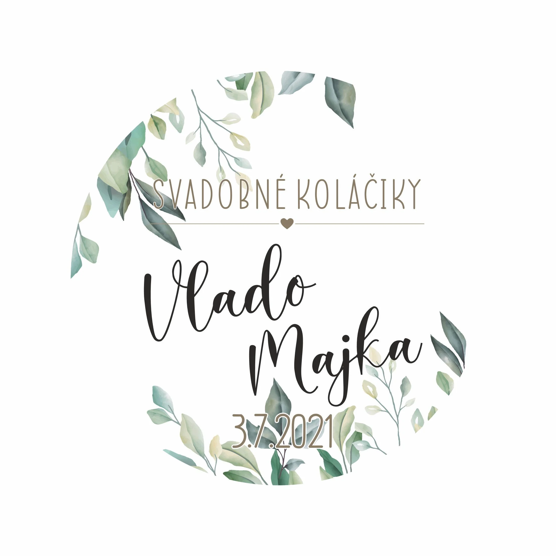 Svadobná nálepka na mieru s textom svadobné koláčiky. celý popis