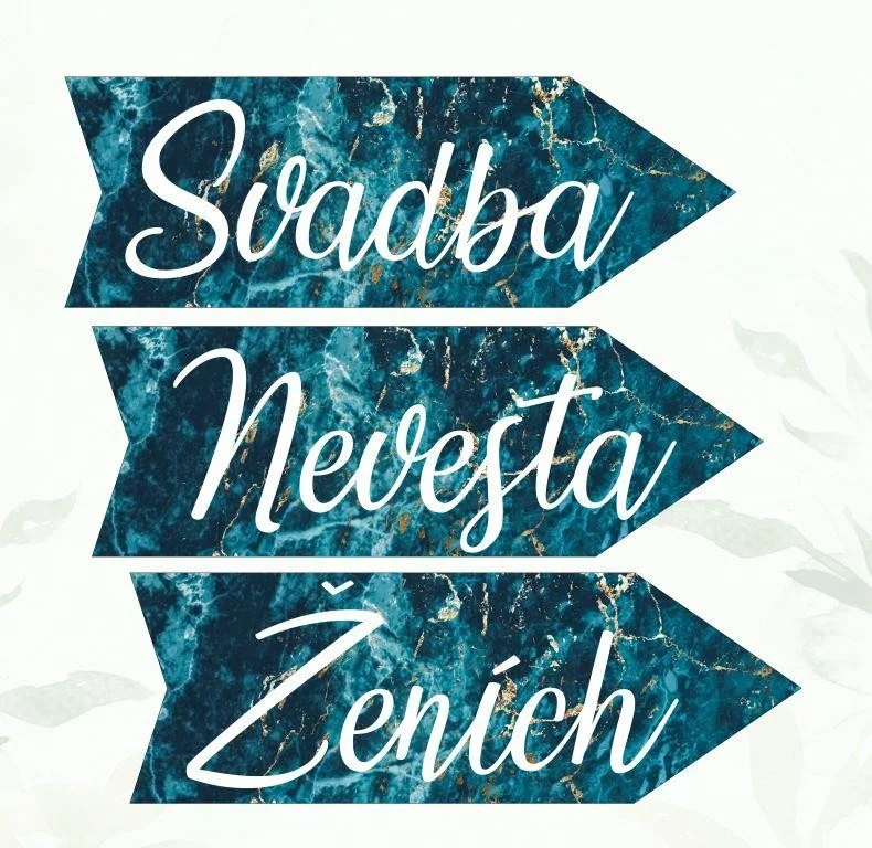 Svadobná tabuľka v tvare šípky. Cena je uvedená pre 1 ks šípky. Vyberte nápis (svadba/ženích/nevesta) na šípke, smer celý popis