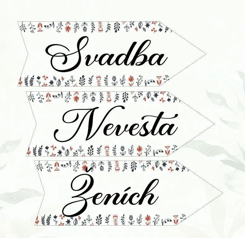 Svadobná tabuľka v tvare šípky. Cena je uvedená pre 1 ks šípky. Vyberte nápis (svadba/ženích/nevesta) na šípke, smer celý popis