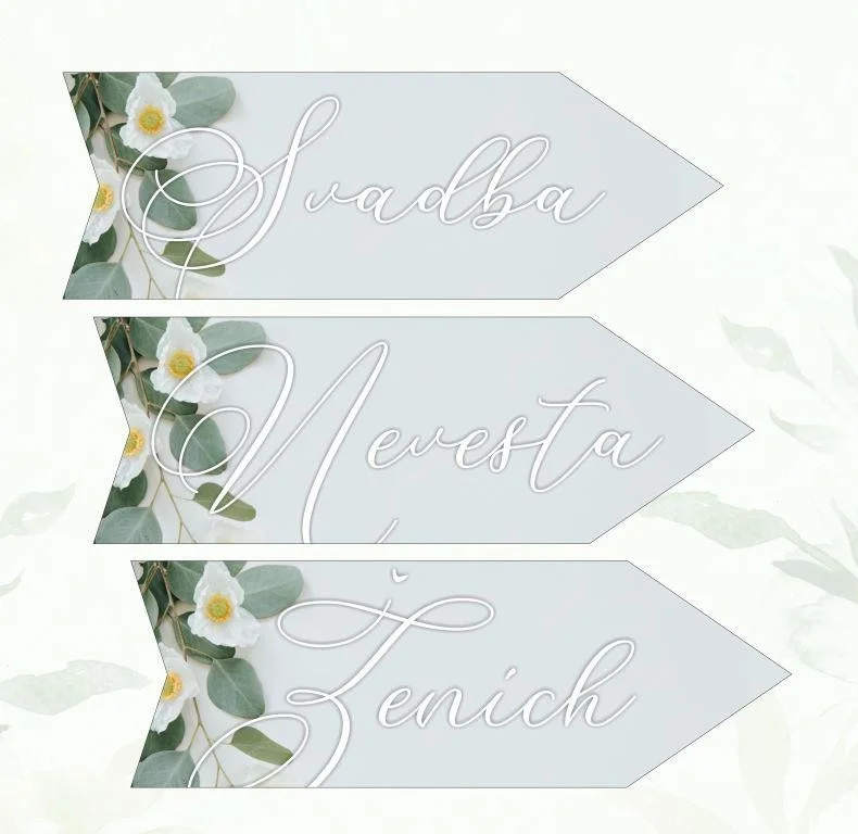 Svadobná tabuľka v tvare šípky. Cena je uvedená pre 1 ks šípky. Vyberte nápis (svadba/ženích/nevesta) na šípke, smer celý popis