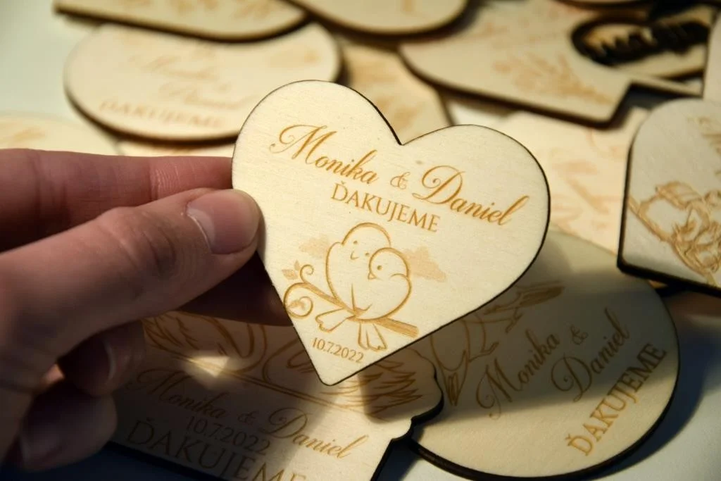 Všetky magnetky vyrábame pre Vás na mieru, preto pri objednávke nezabudnite napísať menáa dátum Vašej svadby.
