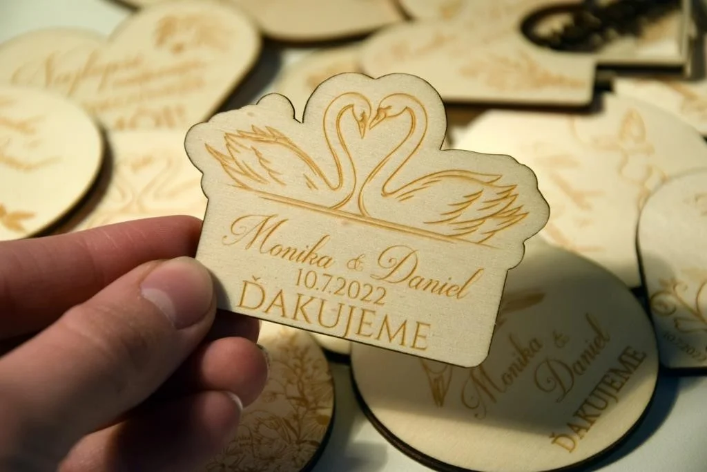 Všetky magnetky vyrábame pre Vás na mieru, preto pri objednávke nezabudnite napísať menáa dátum Vašej svadby.