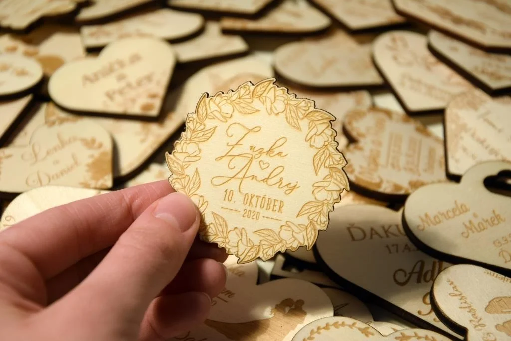 Všetky magnetky vyrábame pre Vás na mieru, preto pri objednávke nezabudnite napísať menáa dátum Vašej svadby.