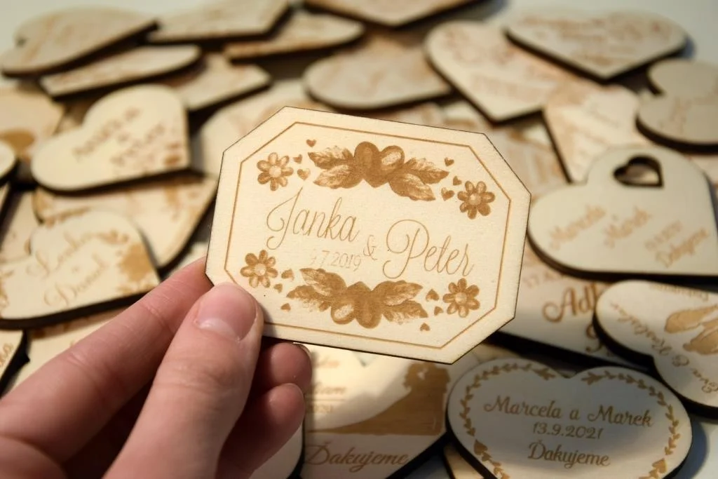Všetky magnetky vyrábame pre Vás na mieru, preto pri objednávke nezabudnite napísať menáa dátum Vašej svadby.