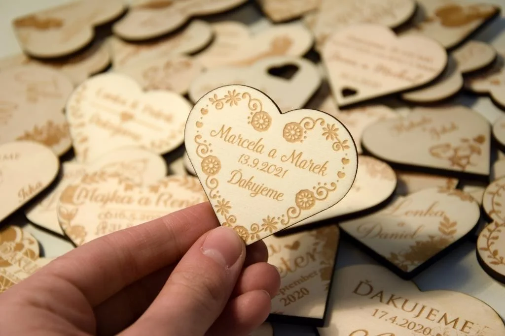 Všetky magnetky vyrábame pre Vás na mieru, preto pri objednávke nezabudnite napísať menáa dátum Vašej svadby.
