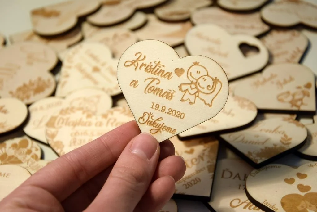 Všetky magnetky vyrábame pre Vás na mieru, preto pri objednávke nezabudnite napísať menáa dátum Vašej svadby.