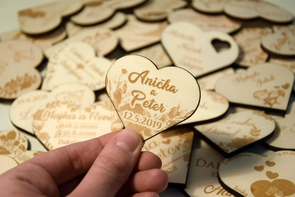 Všetky magnetky vyrábame pre Vás na mieru, preto pri objednávke nezabudnite napísať menáa dátum Vašej svadby.