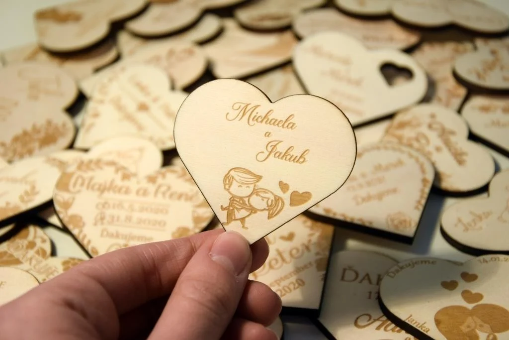 Všetky magnetky vyrábame pre Vás na mieru, preto pri objednávke nezabudnite napísať menáa dátum Vašej svadby.