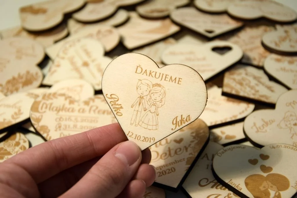 Všetky magnetky vyrábame pre Vás na mieru, preto pri objednávke nezabudnite napísať menáa dátum Vašej svadby.