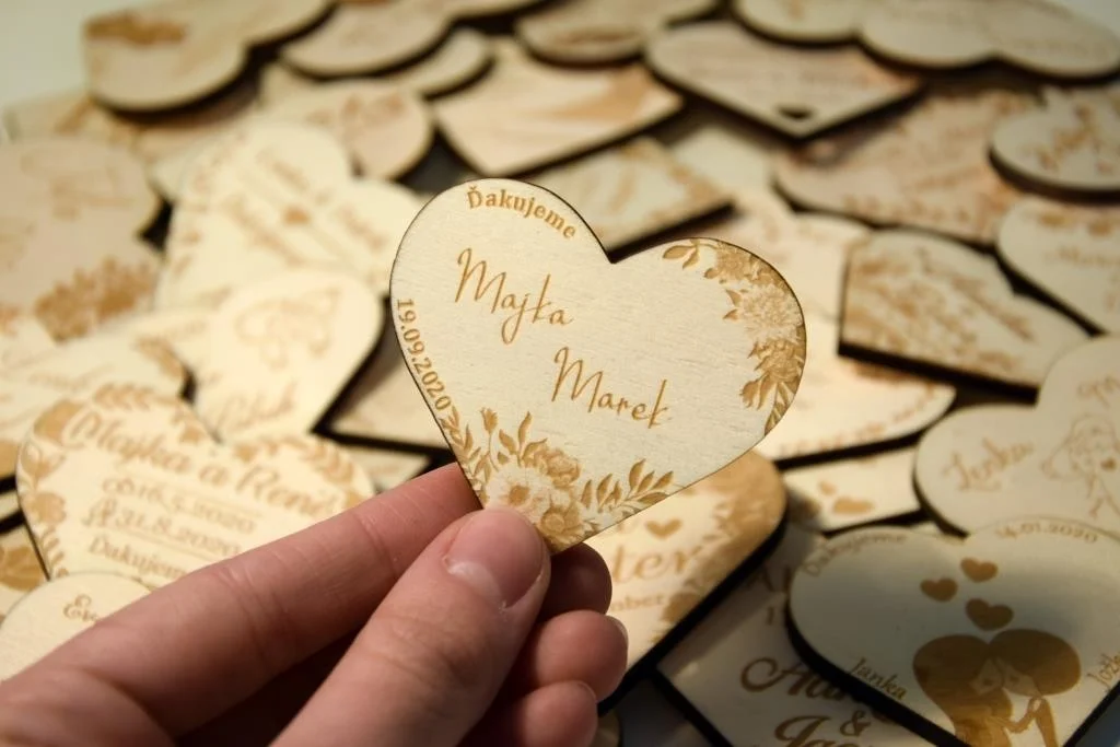 Všetky magnetky vyrábame pre Vás na mieru, preto pri objednávke nezabudnite napísať menáa dátum Vašej svadby.