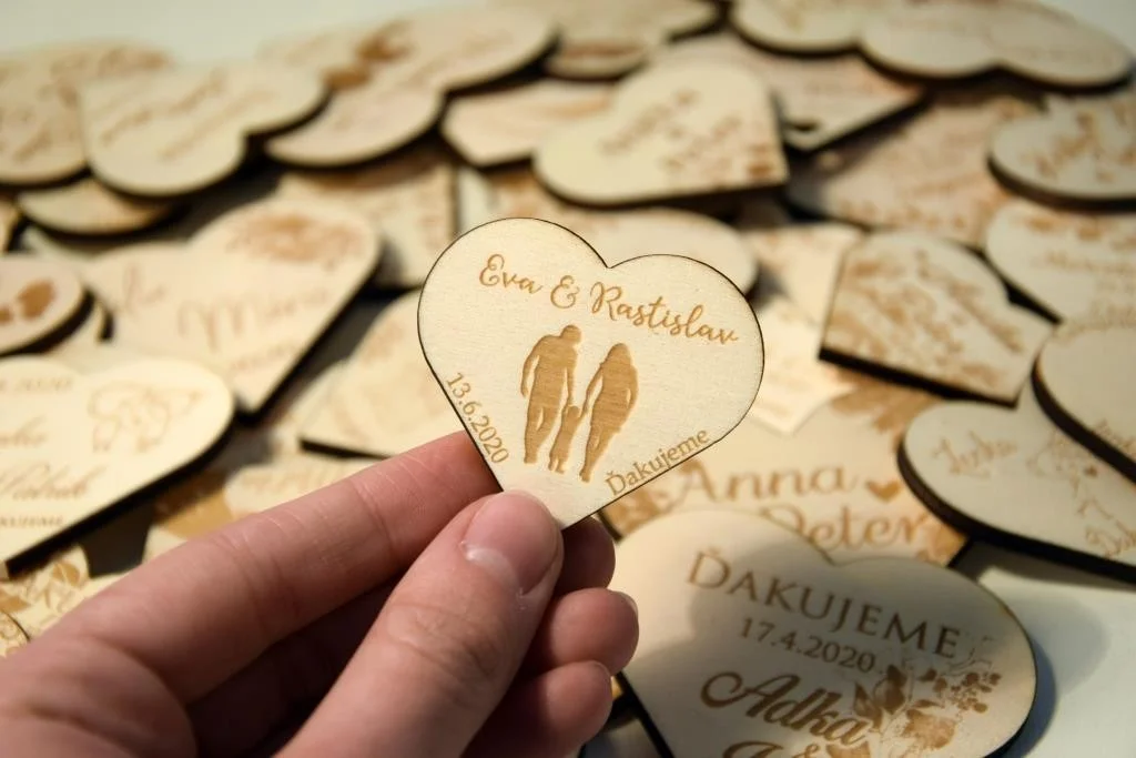 Všetky magnetky vyrábame pre Vás na mieru, preto pri objednávke nezabudnite napísať menáa dátum Vašej svadby.