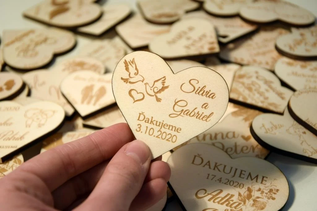Všetky magnetky vyrábame pre Vás na mieru, preto pri objednávke nezabudnite napísať menáa dátum Vašej svadby.