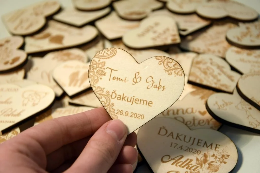 Všetky magnetky vyrábame pre Vás na mieru, preto pri objednávke nezabudnite napísať menáa dátum Vašej svadby.