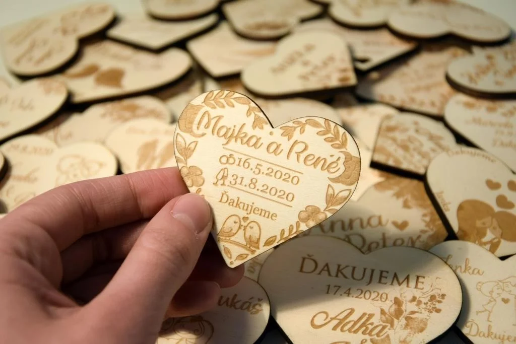 Všetky magnetky vyrábame pre Vás na mieru, preto pri objednávke nezabudnite napísať menáa dátum Vašej svadby.
