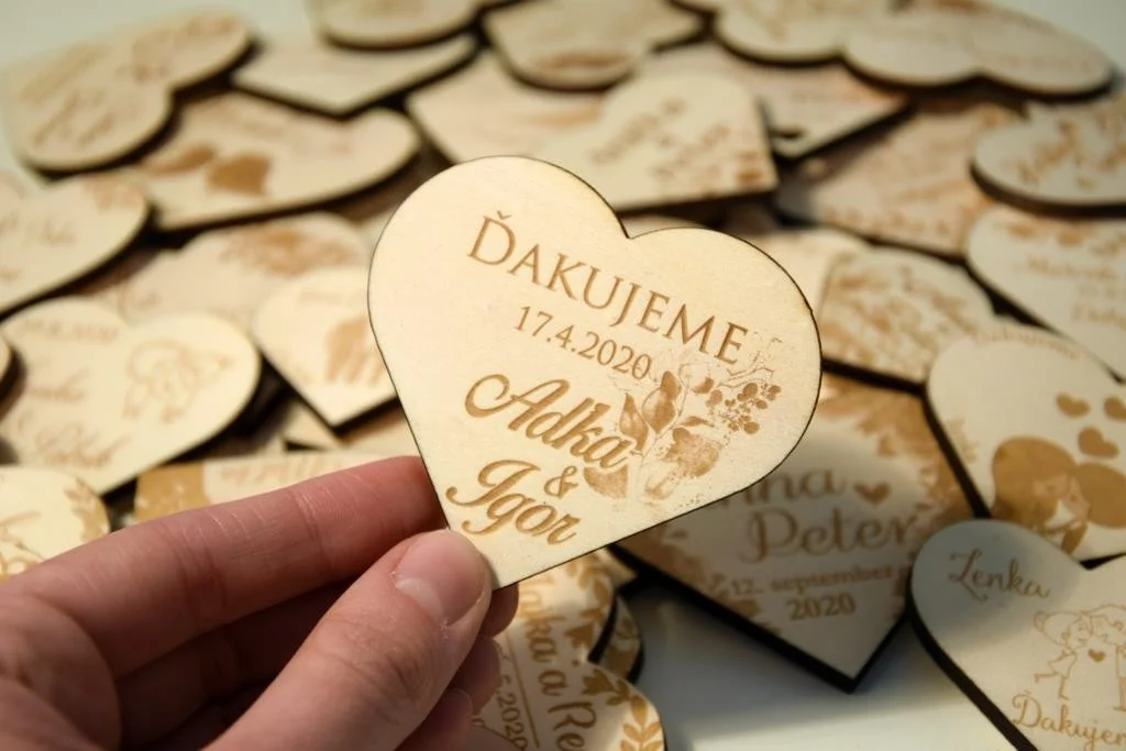 Všetky magnetky vyrábame pre Vás na mieru, preto pri objednávke nezabudnite napísať menáa dátum Vašej svadby.