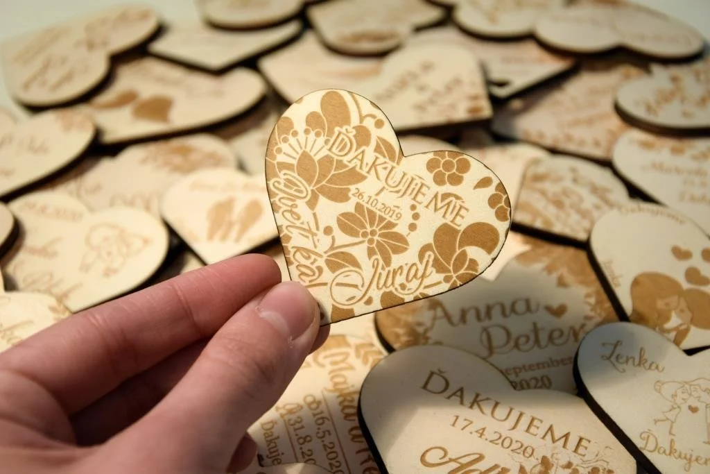 Všetky magnetky vyrábame pre Vás na mieru, preto pri objednávke nezabudnite napísať menáa dátum Vašej svadby.