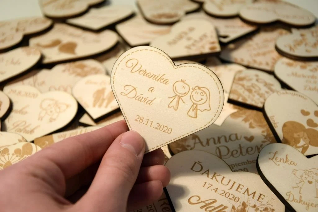 Všetky magnetky vyrábame pre Vás na mieru, preto pri objednávke nezabudnite napísať menáa dátum Vašej svadby.