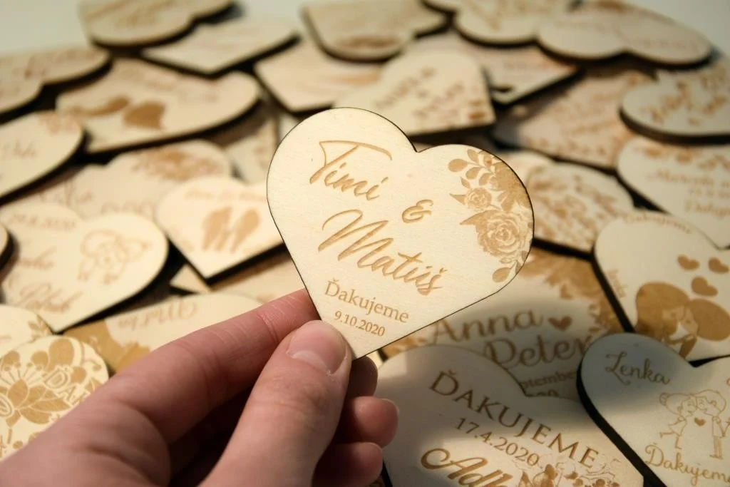 Všetky magnetky vyrábame pre Vás na mieru, preto pri objednávke nezabudnite napísať menáa dátum Vašej svadby.