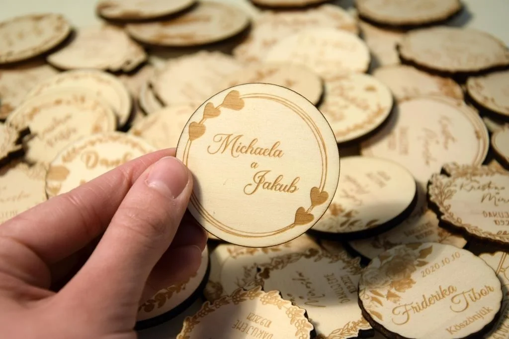 Všetky magnetky vyrábame pre Vás na mieru, preto pri objednávke nezabudnite napísať menáa dátum Vašej svadby.