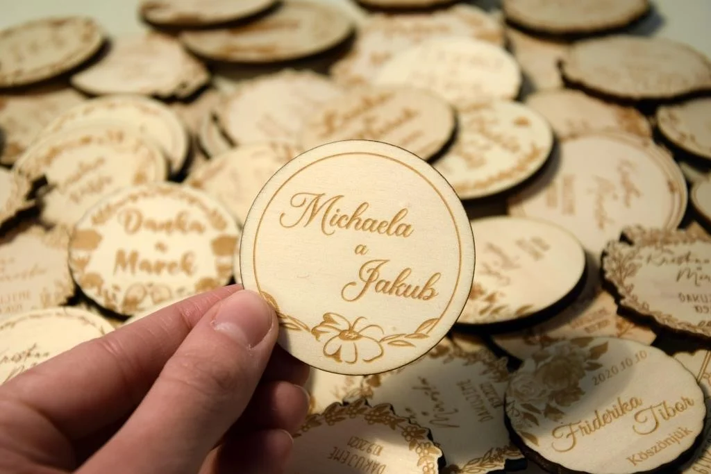 Všetky magnetky vyrábame pre Vás na mieru, preto pri objednávke nezabudnite napísať menáa dátum Vašej svadby.