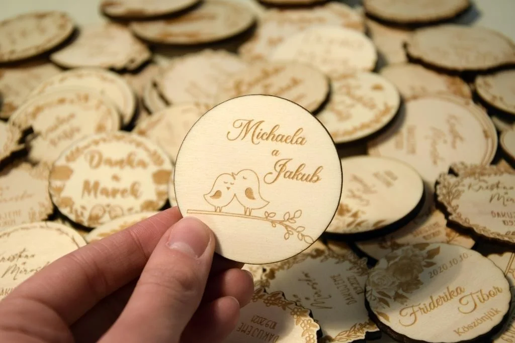 Všetky magnetky vyrábame pre Vás na mieru, preto pri objednávke nezabudnite napísať menáa dátum Vašej svadby.