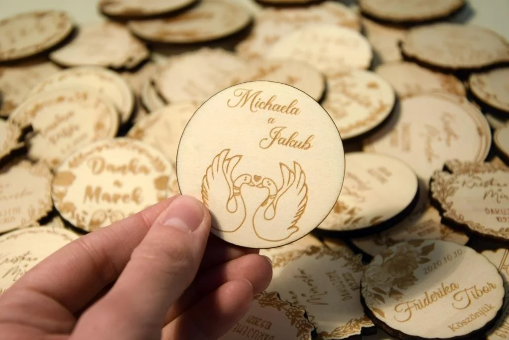 Všetky magnetky vyrábame pre Vás na mieru, preto pri objednávke nezabudnite napísať menáa dátum Vašej svadby.